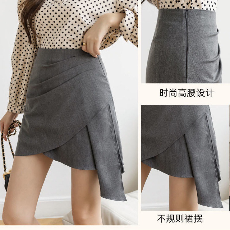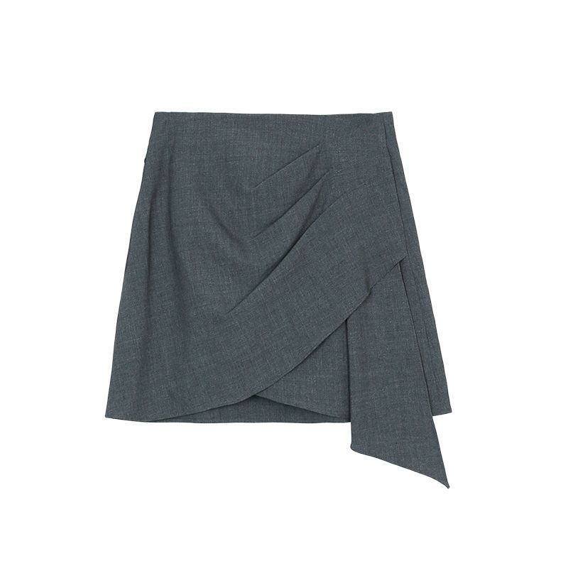 觅定灰色不规则半身裙女春设计感小众高腰a字裙西装短裙黑色裙子
