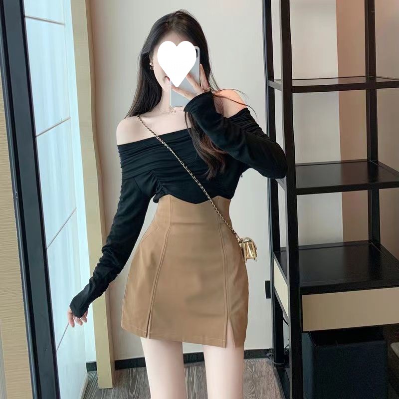 ins超火皮裙a字裙半身裙女春季新款时尚高腰开叉包臀短裙子潮