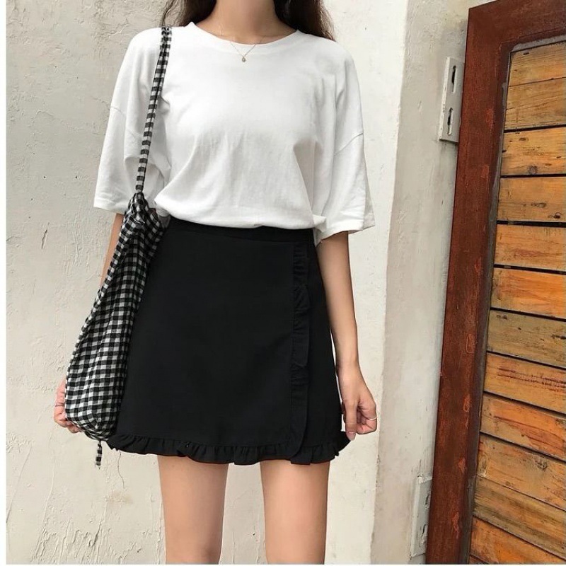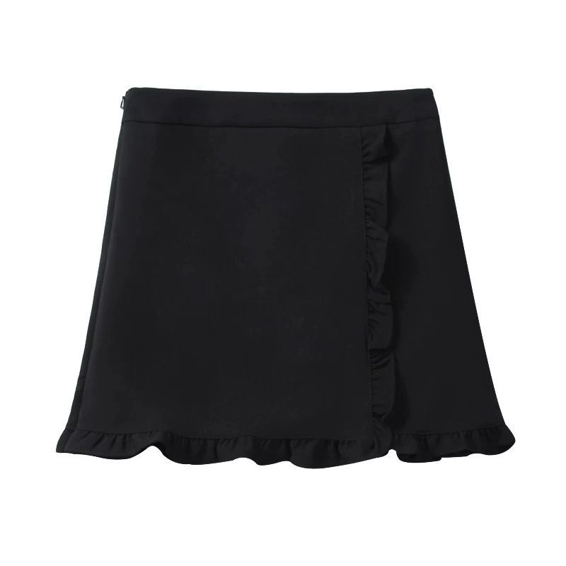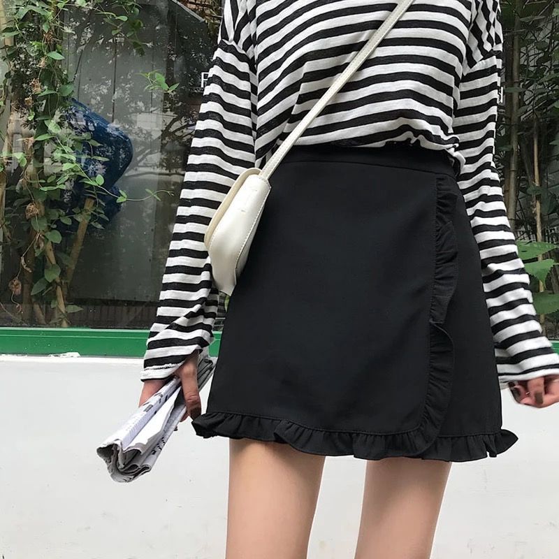 荷叶边半身裙女春季新款韩版高腰显瘦包臀a字裙学生黑色短裙