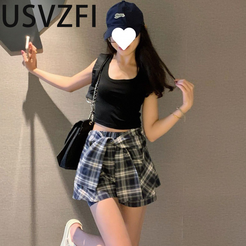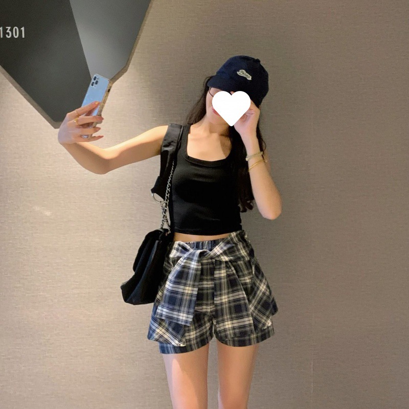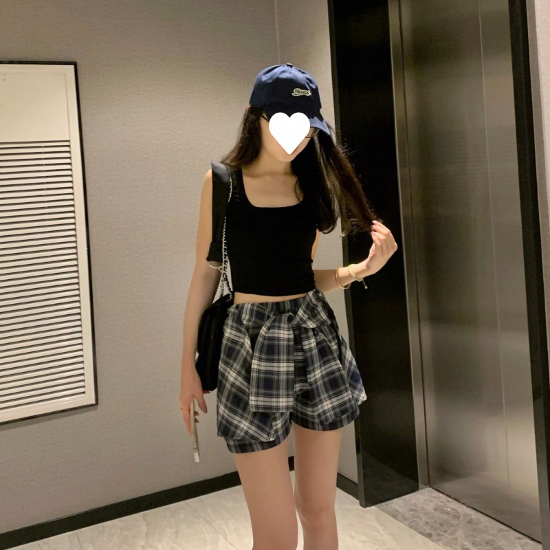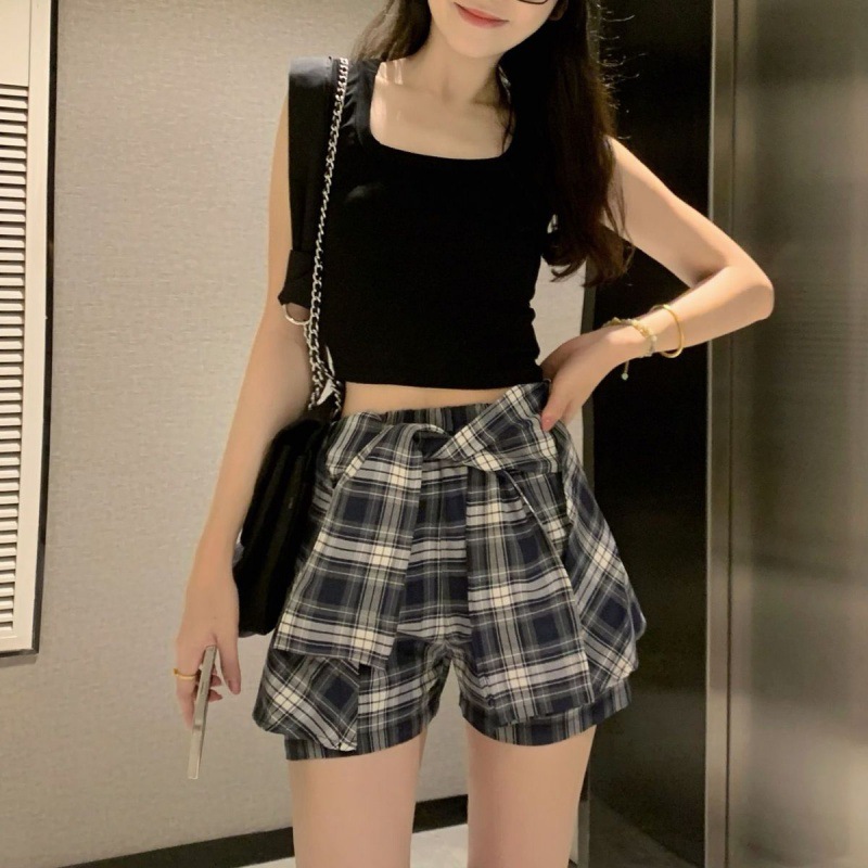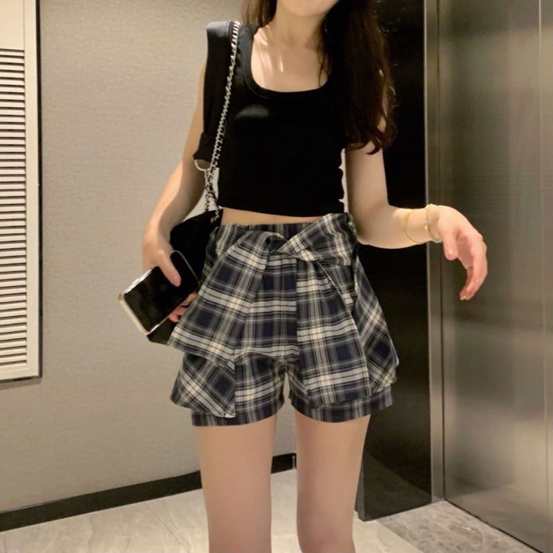 夏季新款设计不规则格子短裙裤女气质高腰半身裙显瘦裤裙