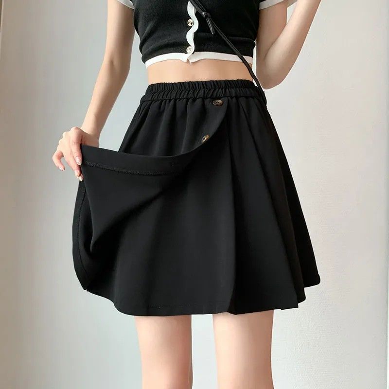 半身裙女夏季韩版新款短裙安全裤防走光松紧高腰五分裙A字裙