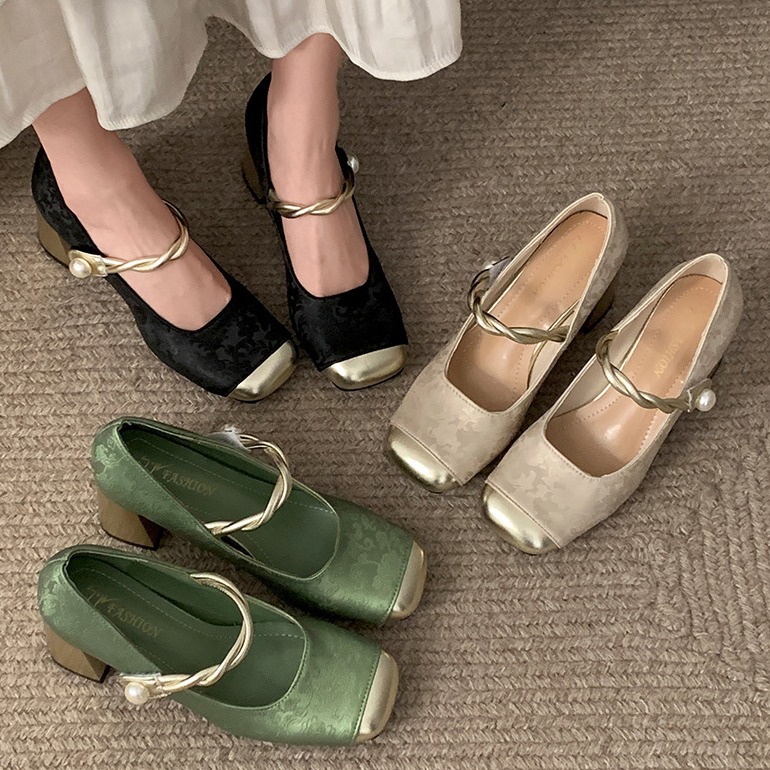 小个子法式复古配裙子粗跟高跟鞋女新款夏季增高浅口玛丽珍鞋