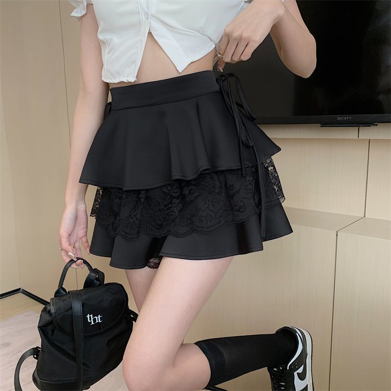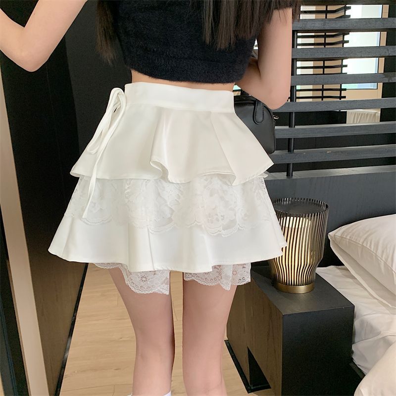 蓬蓬半身裤裙春夏系带蕾丝拼接高腰显瘦蛋糕裙设计感小众A字短裙
