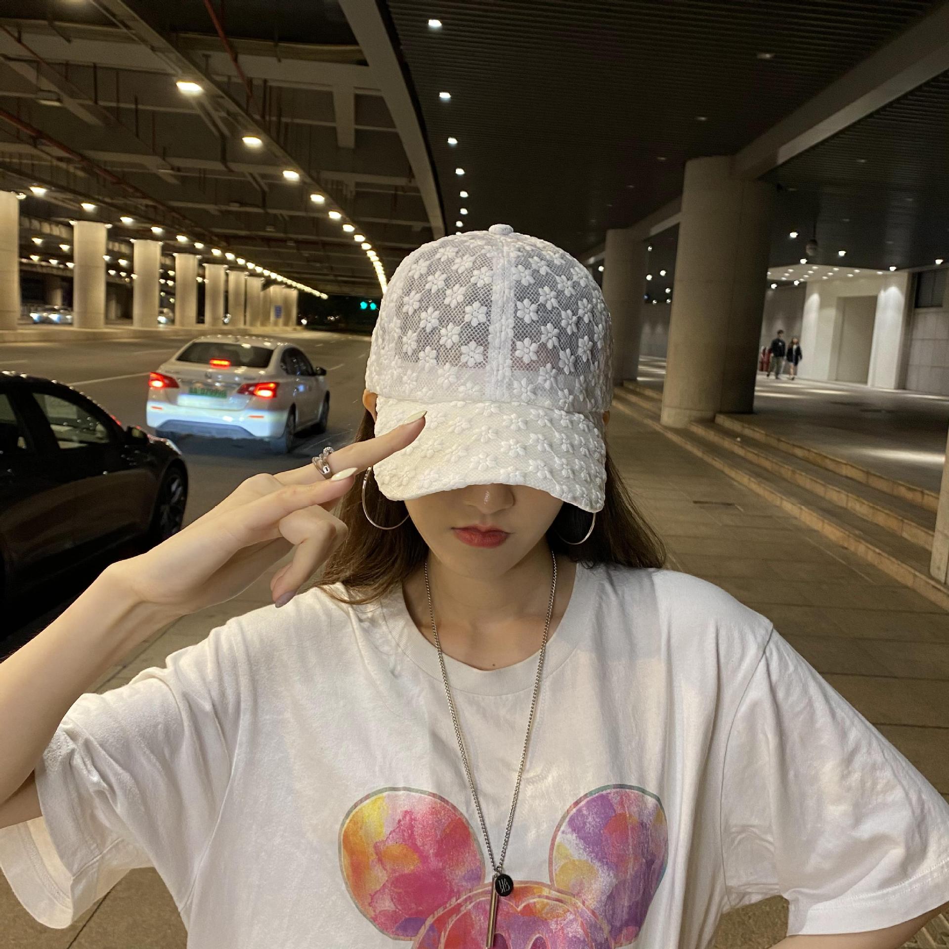 新款帽子女韩版夏天蕾丝花朵棒球帽时尚百搭显气质遮阳镂空鸭舌帽