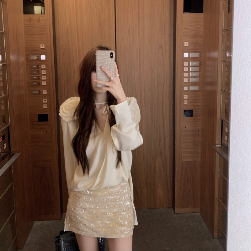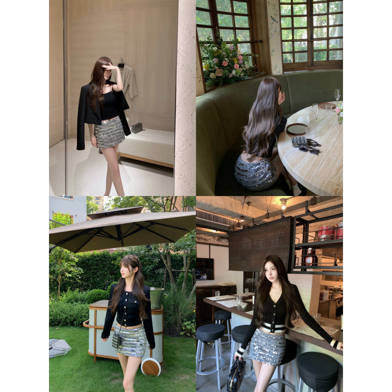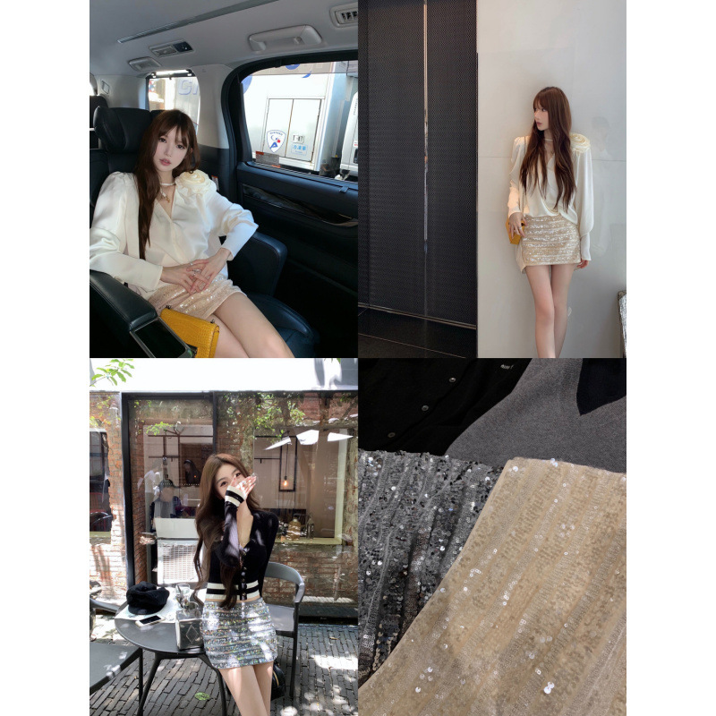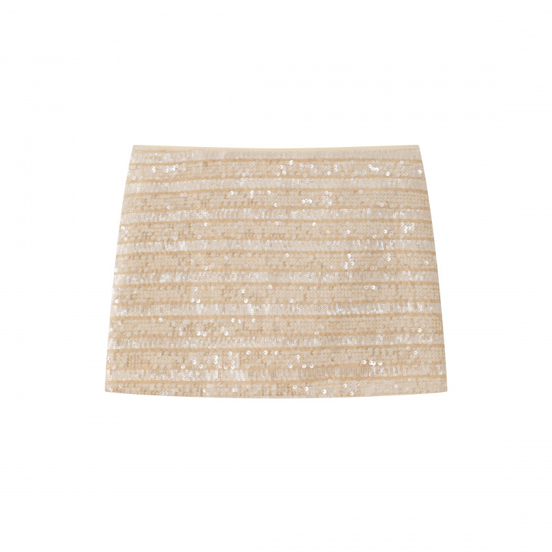 杏色辣妹早秋半身裙女新款条纹亮片a字裙低腰百搭气质休闲短裙子