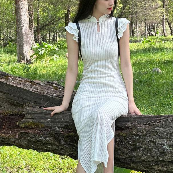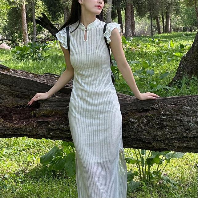 改良旗袍连衣裙女夏季新款复古国风盘扣小个子开叉针织裙子薄