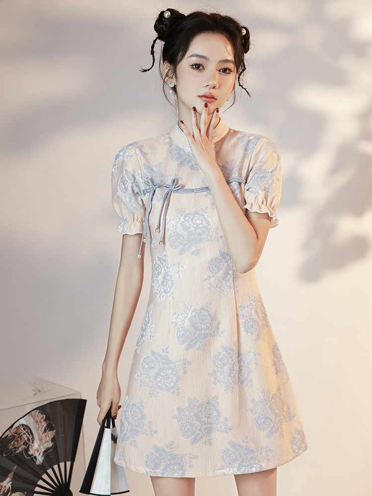 国潮旗袍年新款夏季少女日常可穿年轻款改良短款小个子连衣裙