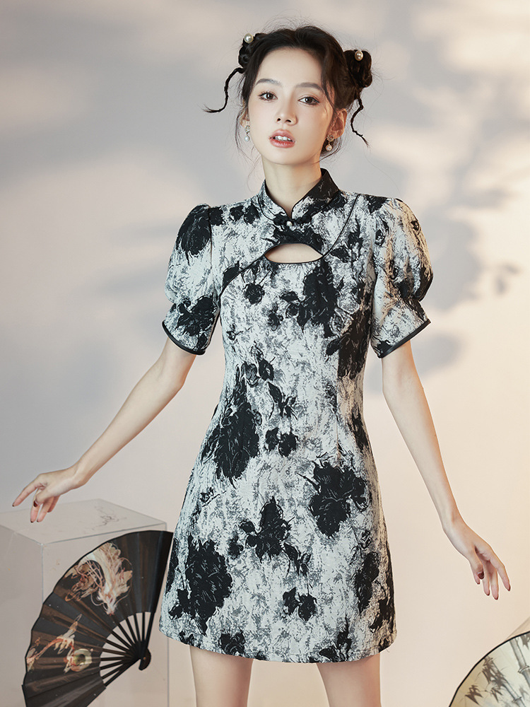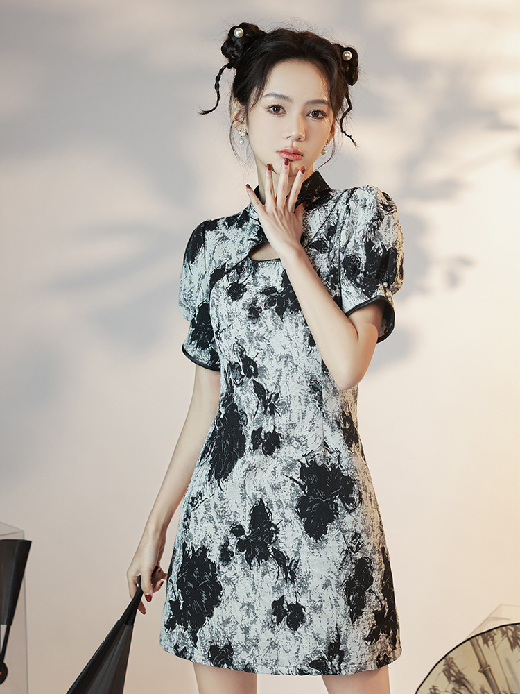 国潮旗袍年新款夏季少女款年轻款改良版小个子连衣裙日常短款