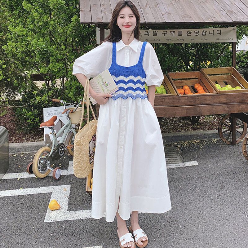 针织吊带衬衫裙两件套女夏季新款韩系学院风甜美减龄套装长裙