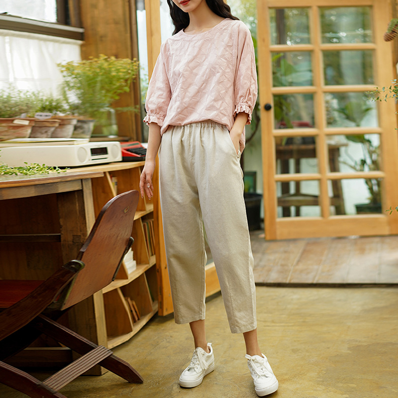 棉麻女装春夏新款裤子女薄文艺宽松九分显瘦休闲萝卜裤