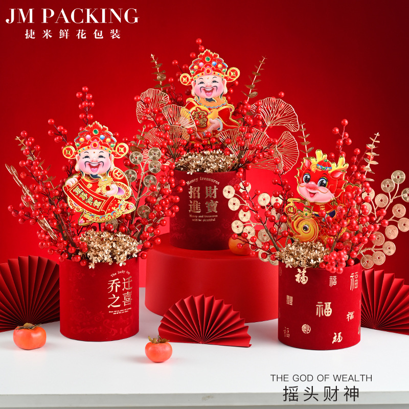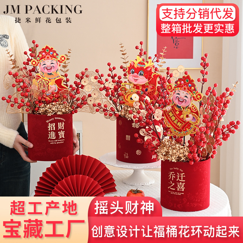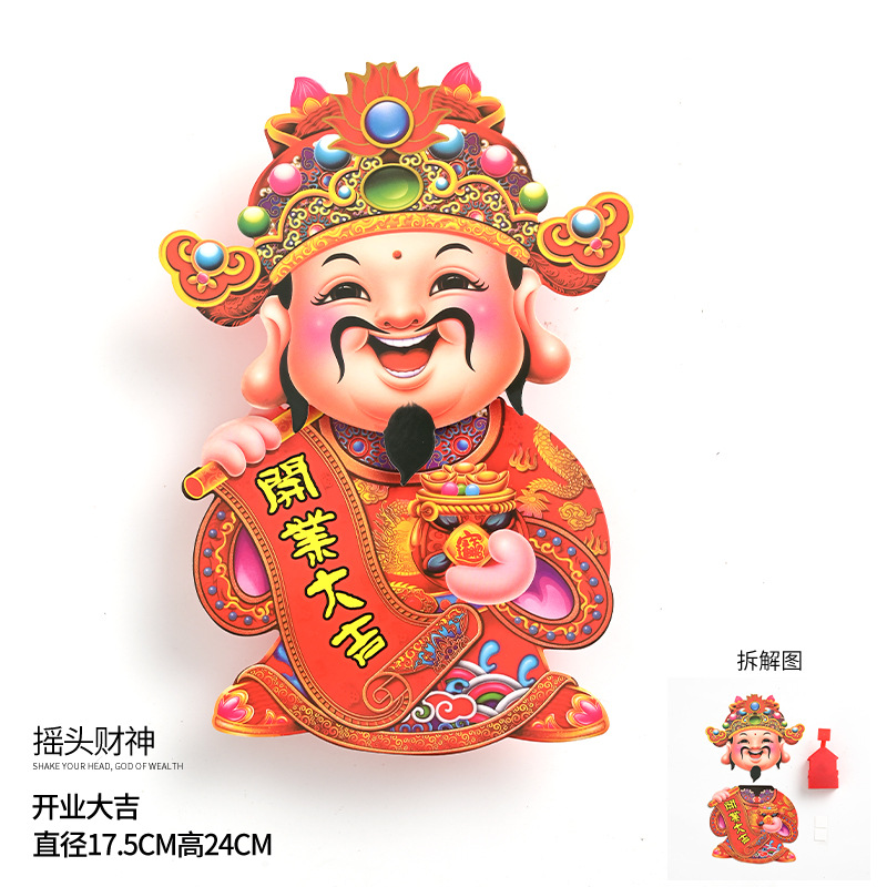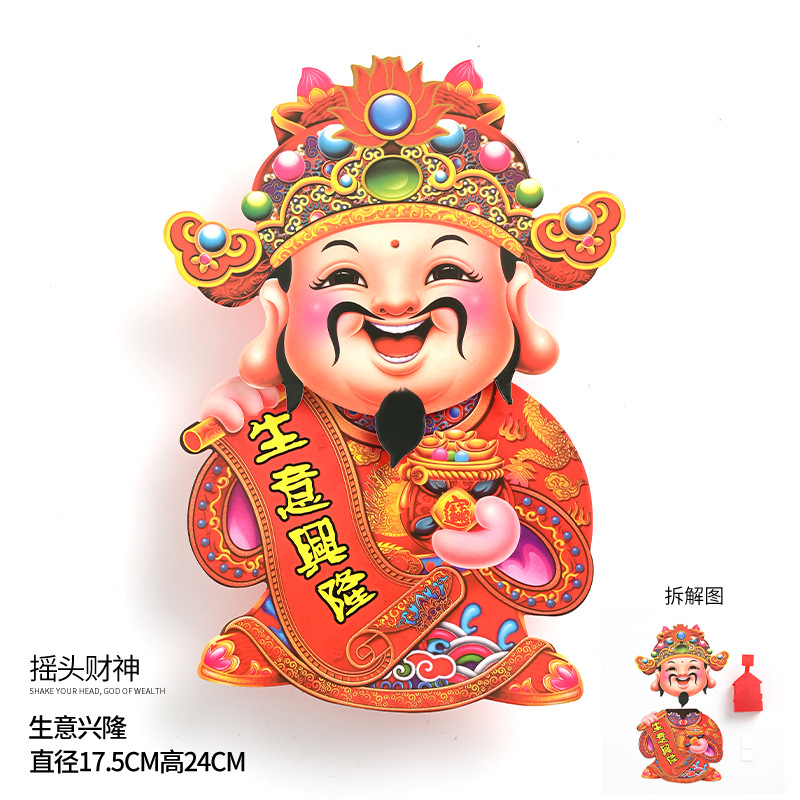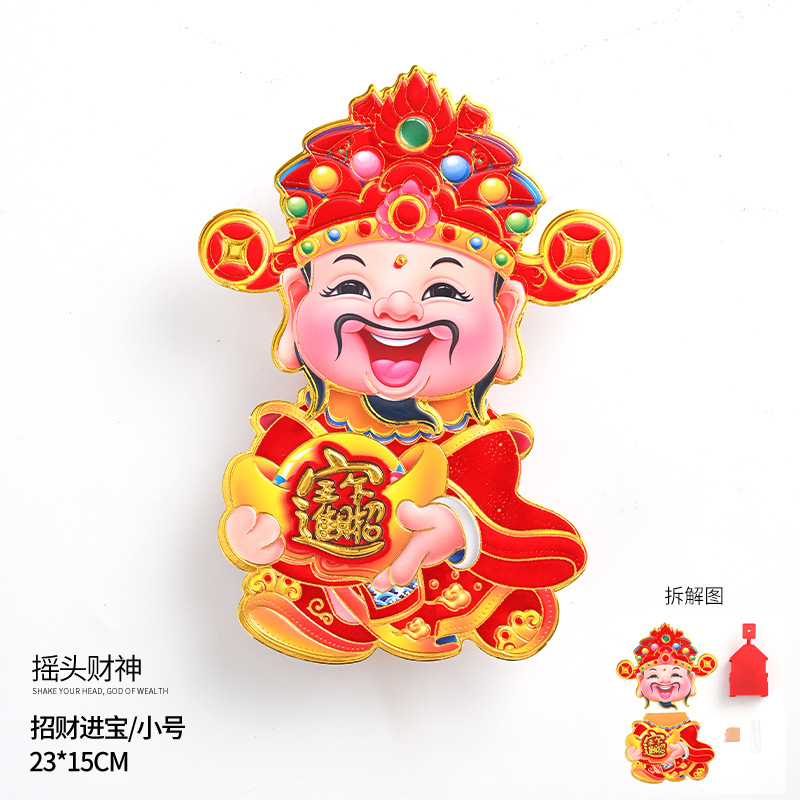 摇头财神 龙年新款电动财神年宵花环装饰品春节挂饰 福桶挂件