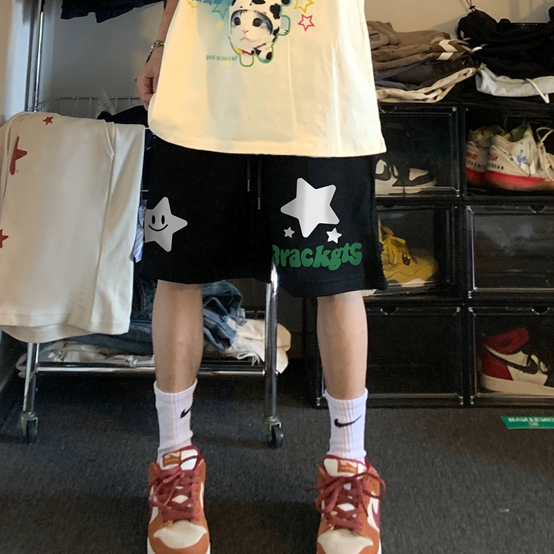 300斤大码美式高街运动短裤女夏季潮牌设计感宽松显瘦阔腿五分裤