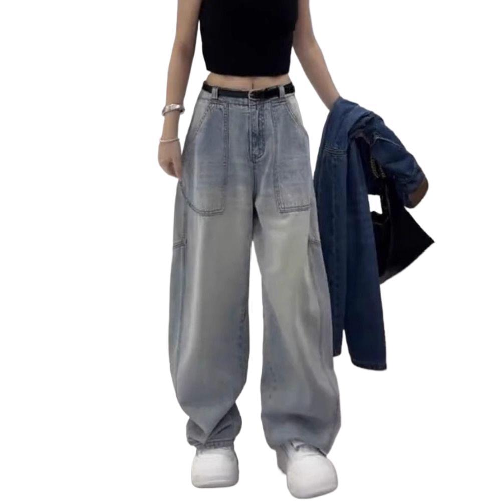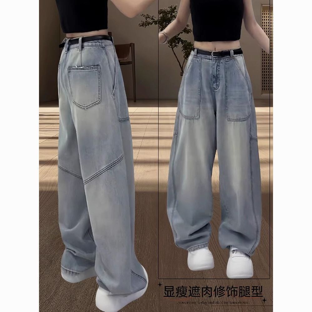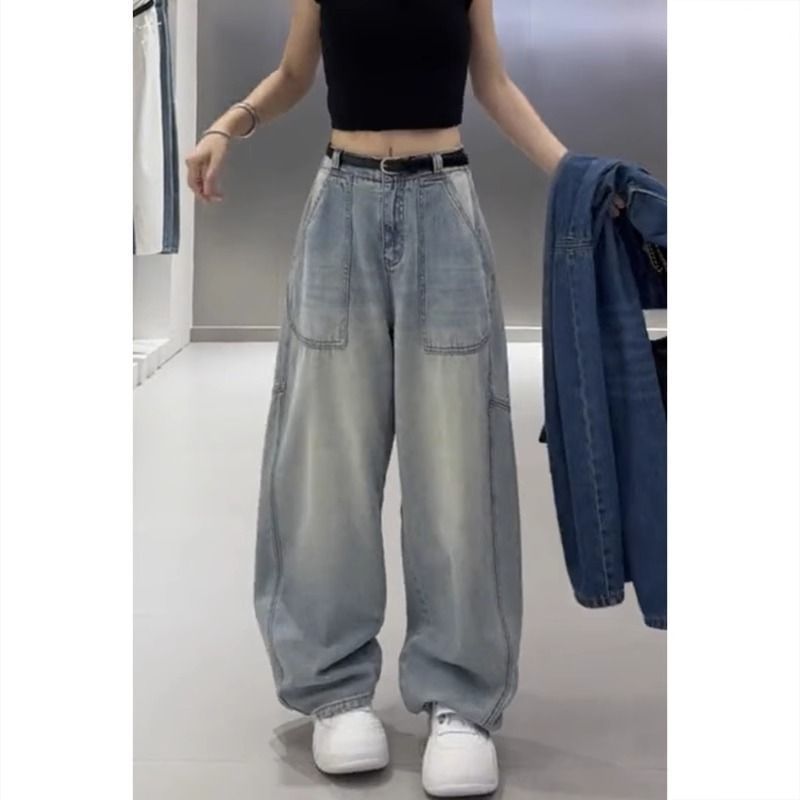 萝卜弯刀哈伦牛仔裤简约夏季胖mm大码新款宽松显瘦阔老爹裤女