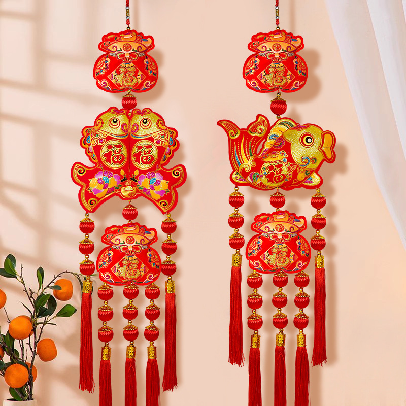 年龙年春节过年装饰挂件新款客厅玄关中国结双鱼挂件