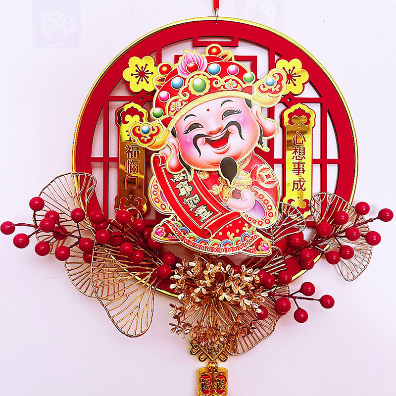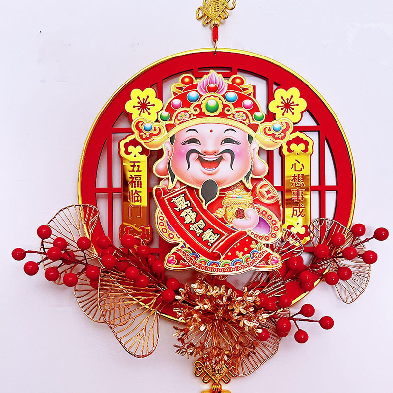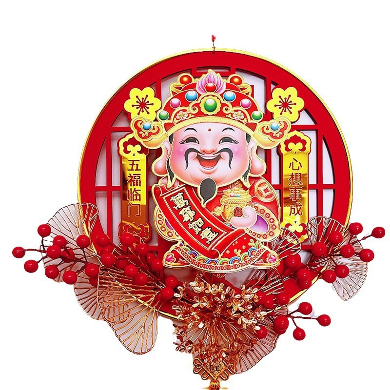 年春节新年财神摇头挂件挂饰财神爷装饰福画贴墙电动客厅摆件