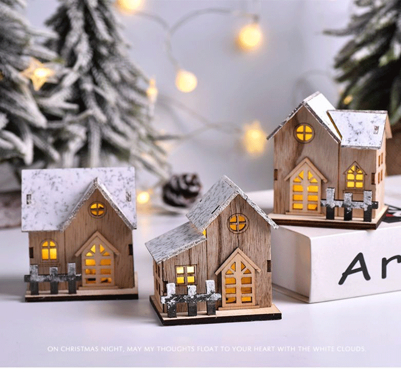 圣诞节装饰品桌面摆件发光小木屋北欧风复古木质小房子圣诞节摆件