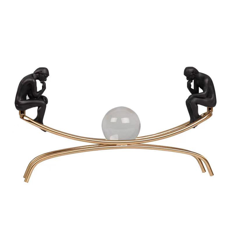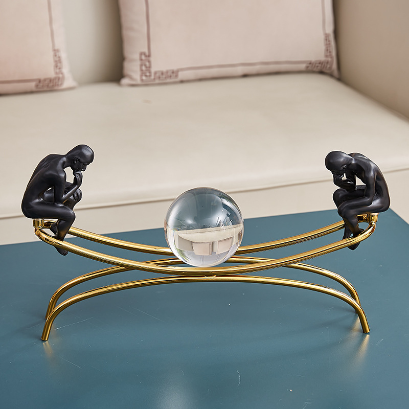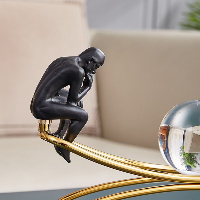 欧式思考者水晶球摆件书桌酒柜装饰现代创意样板房金属树脂工艺