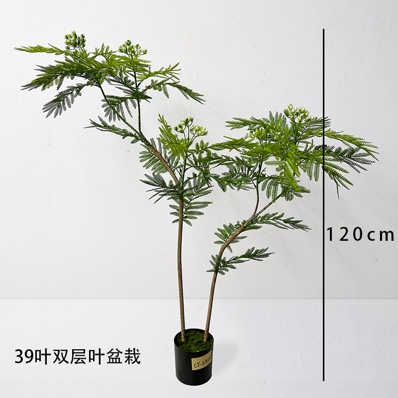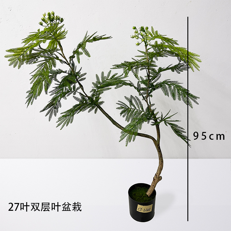 仿真植物盆栽双层叶蕨类盆景中式绿植客厅落地装饰摆件文竹家居