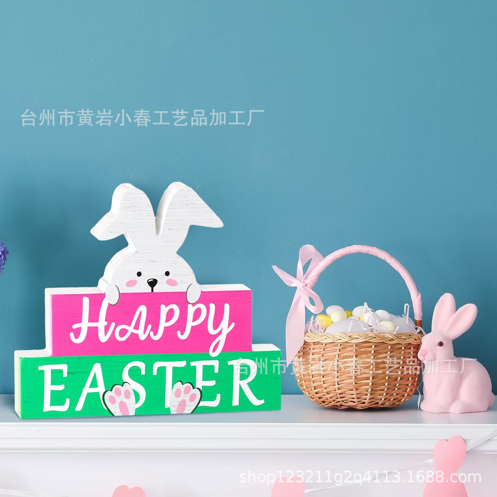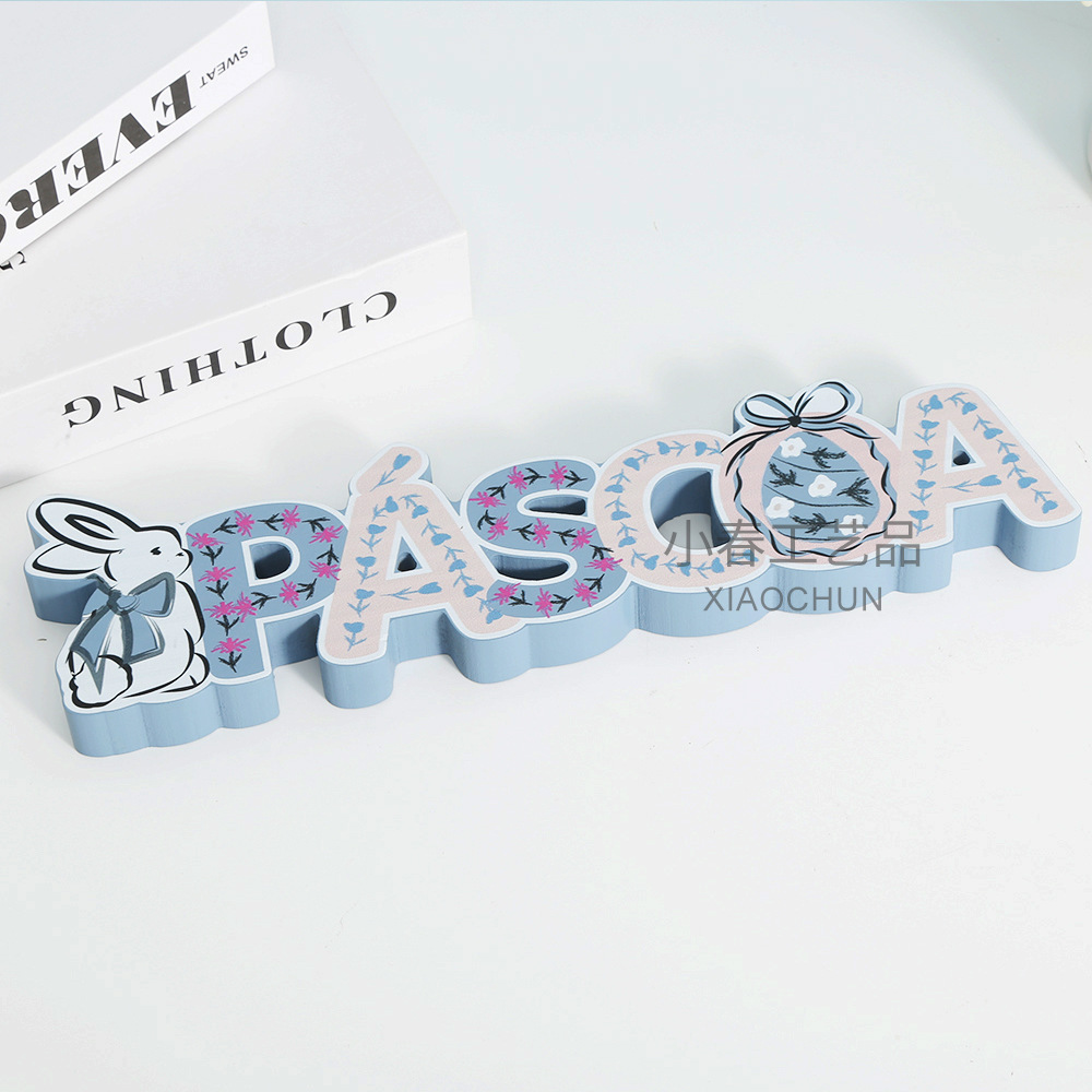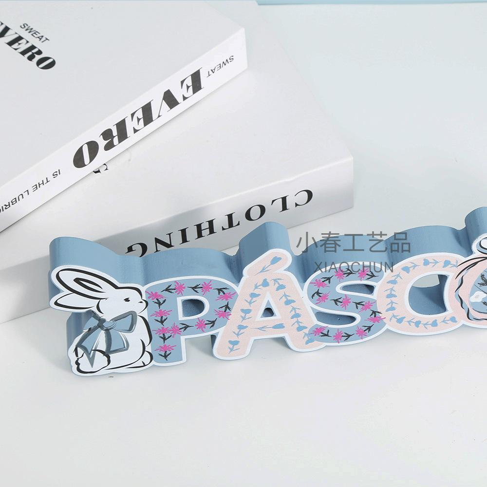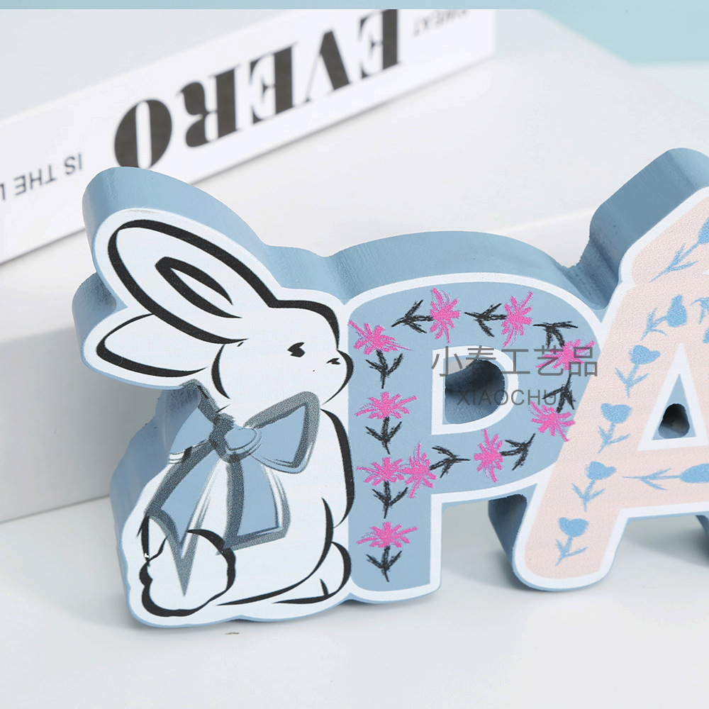 复活节木制字母兔子摆件居家派对装饰品木质工艺品桌面摆件