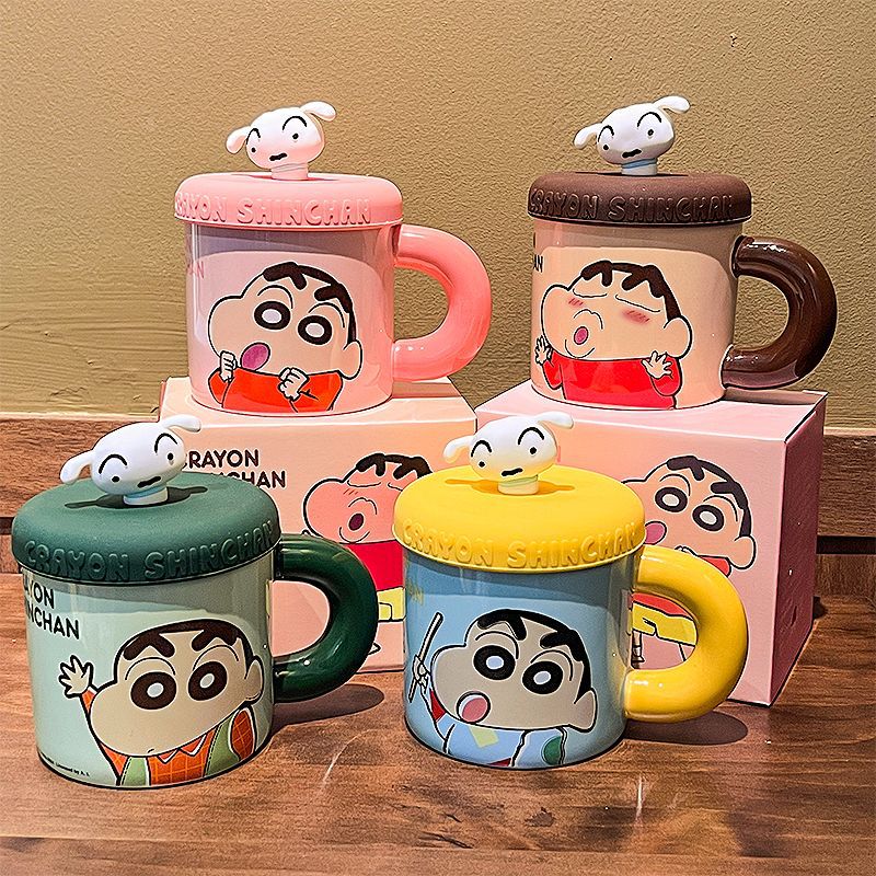 蜡笔小新马克杯女生高颜值带盖生日礼物咖啡杯子家用情侣陶瓷水杯