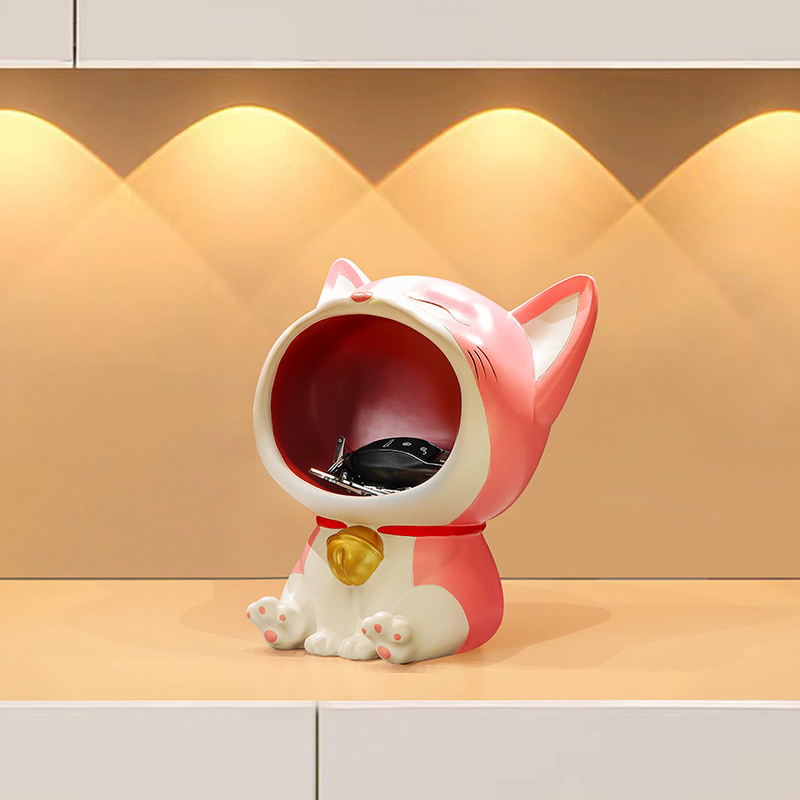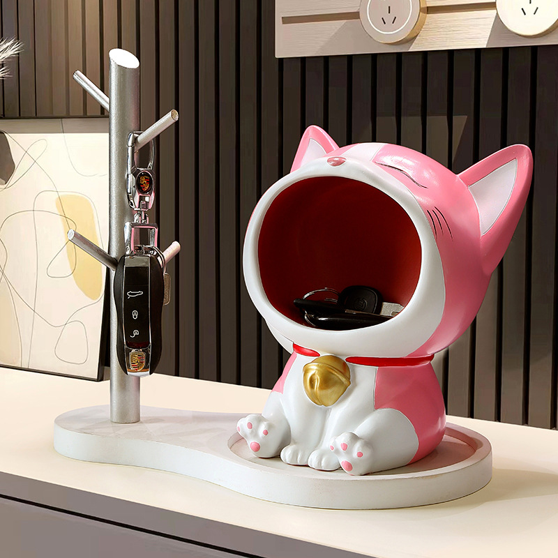 创意猫咪玄关桌面摆件客厅可爱钥匙收纳入户家居装饰品树脂工艺品
