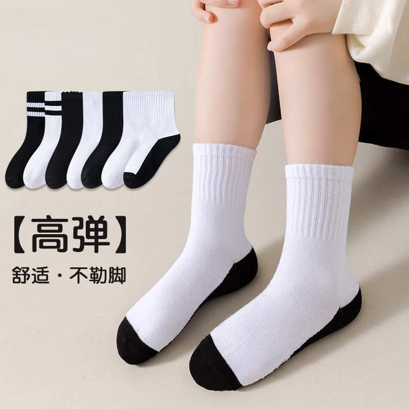 耐脏儿童白色袜子男童中筒春秋男孩运动大童学生白袜学校制定棉袜
