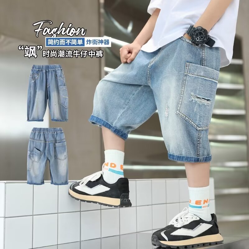 男童夏季潮流七分裤童装破洞牛仔裤新款时尚气质休闲中裤跨境