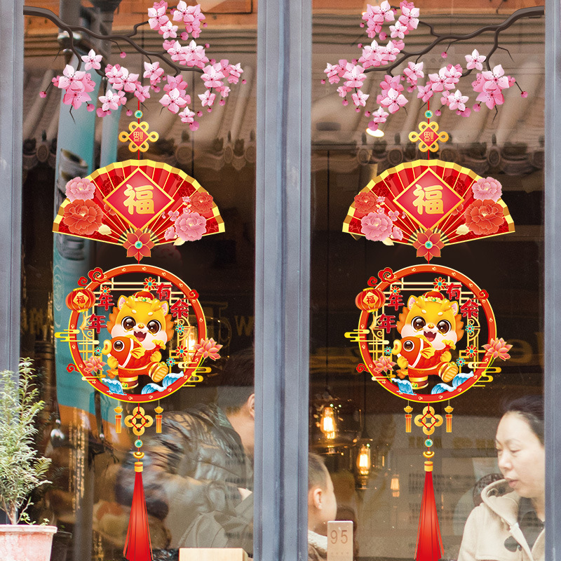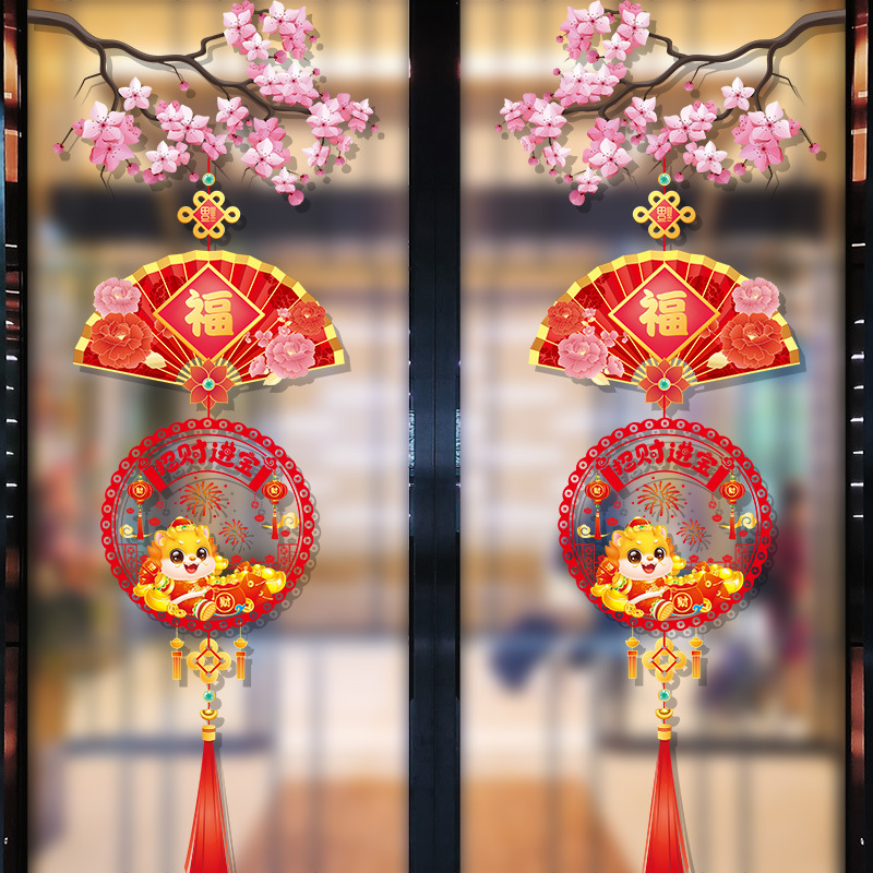 新年过年福字挂饰店铺商场橱窗玻璃装饰窗花贴纸门贴静电贴画