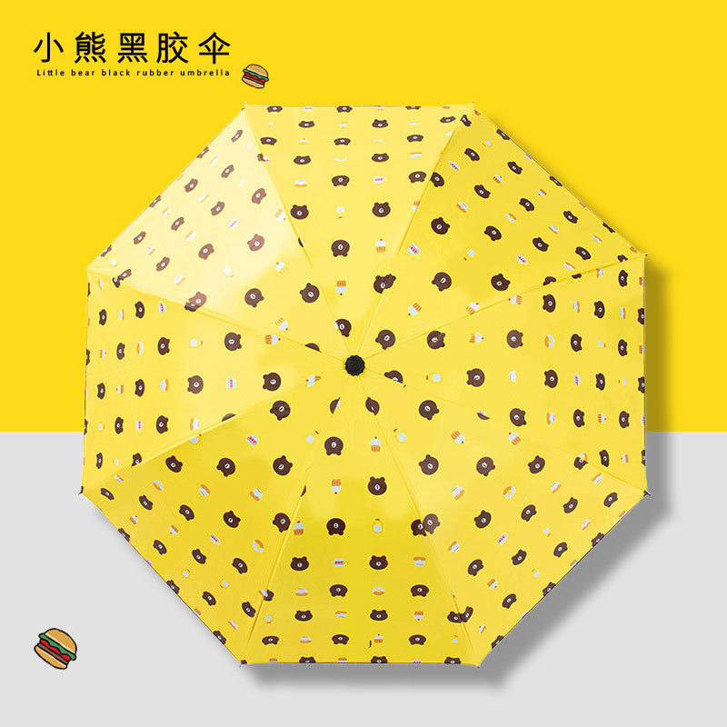 晴雨两用动漫小熊黑胶折叠伞八骨太阳伞防晒防紫外线遮阳雨伞