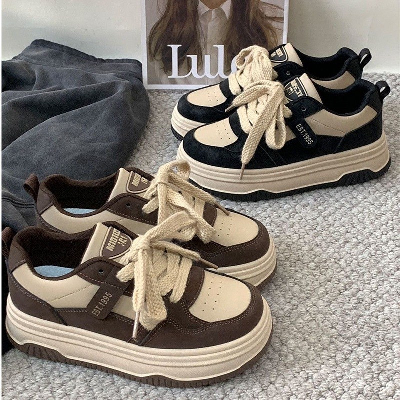 美拉德厚底板鞋女款春季新款面包鞋子女鞋学生百搭休闲运动鞋