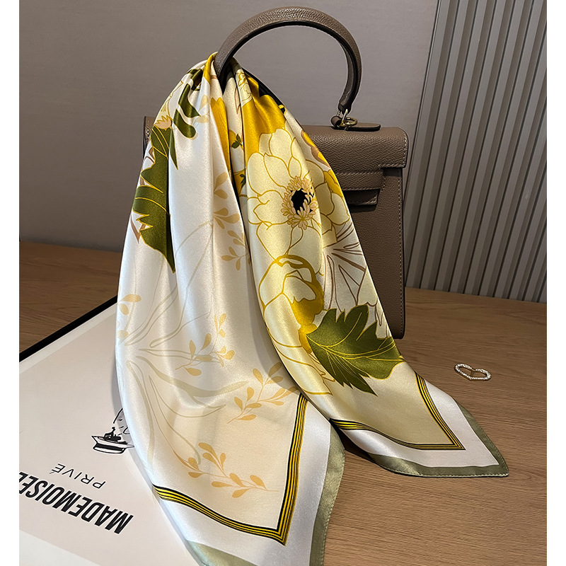 新款真丝方巾女春季百搭时尚100%桑蚕丝丝巾高级感花朵真丝70丝巾