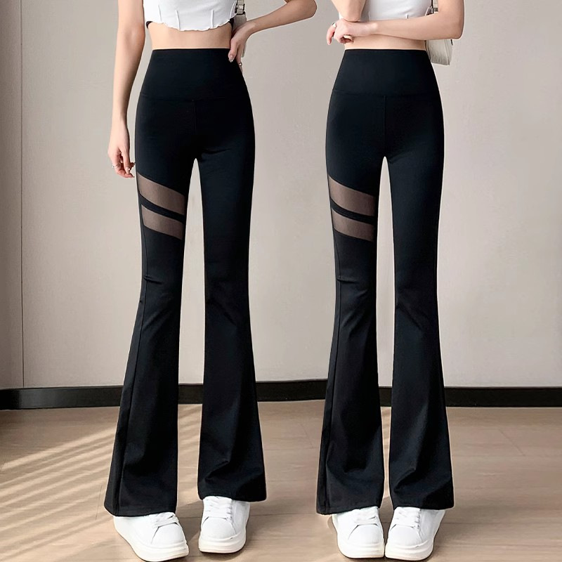 高弹微喇瑜伽裤女夏季薄款外穿休闲裤加长高个子鲨鱼裤高腰喇叭裤