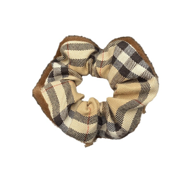 复古格子大肠发圈学院风丸子头发饰新款加粗发绳发圈皮筋头饰