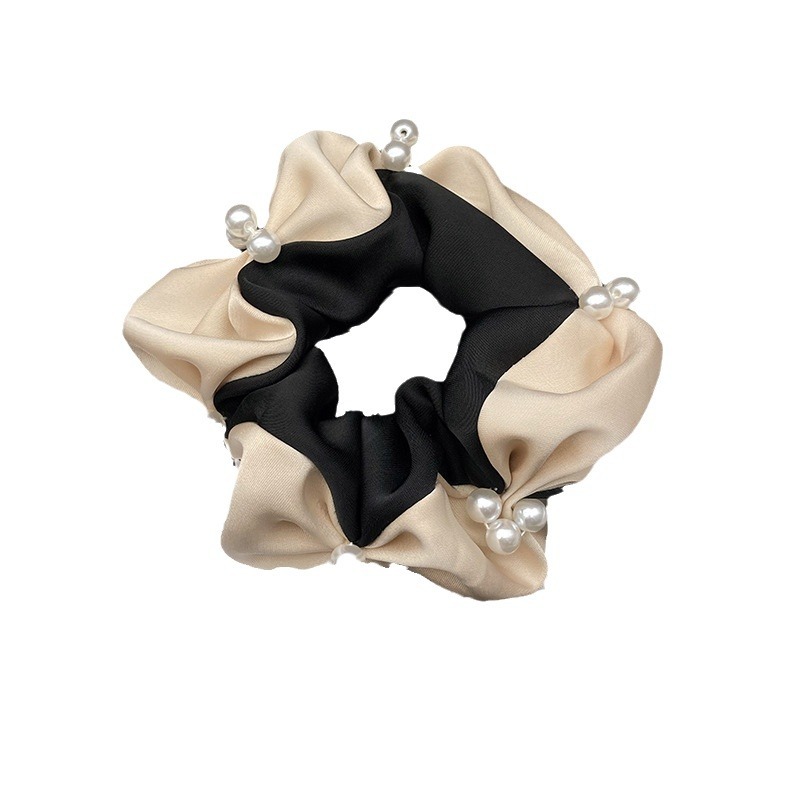轻奢珍珠缝制发圈拼色盘发大肠圈气质优雅百搭丸子头发绳发饰