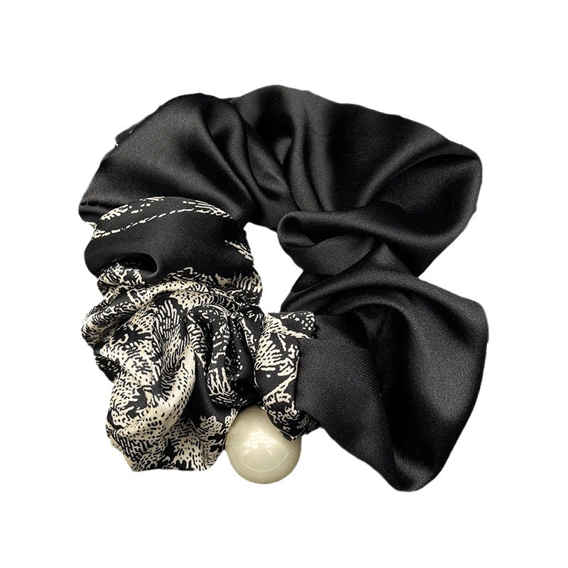 复古黑色拼接印花大肠圈女丸子头新款高级感弹力皮筋头绳发饰