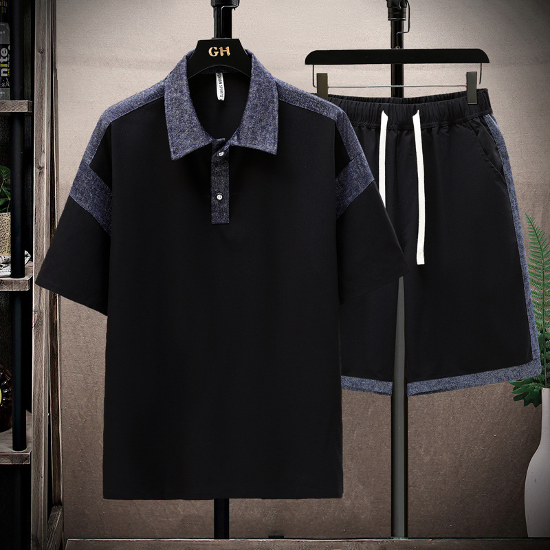男士弹力套装时尚夏季新款学生T恤两件套港风运动高级感爆款百搭