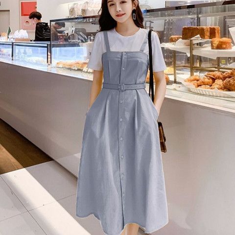 吊带连衣裙新款夏女套装背带裙裙子仙女超仙森系假两件套长裙