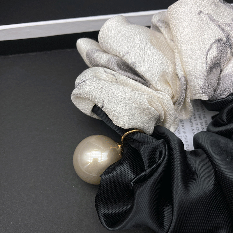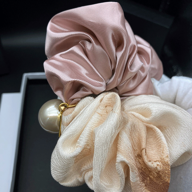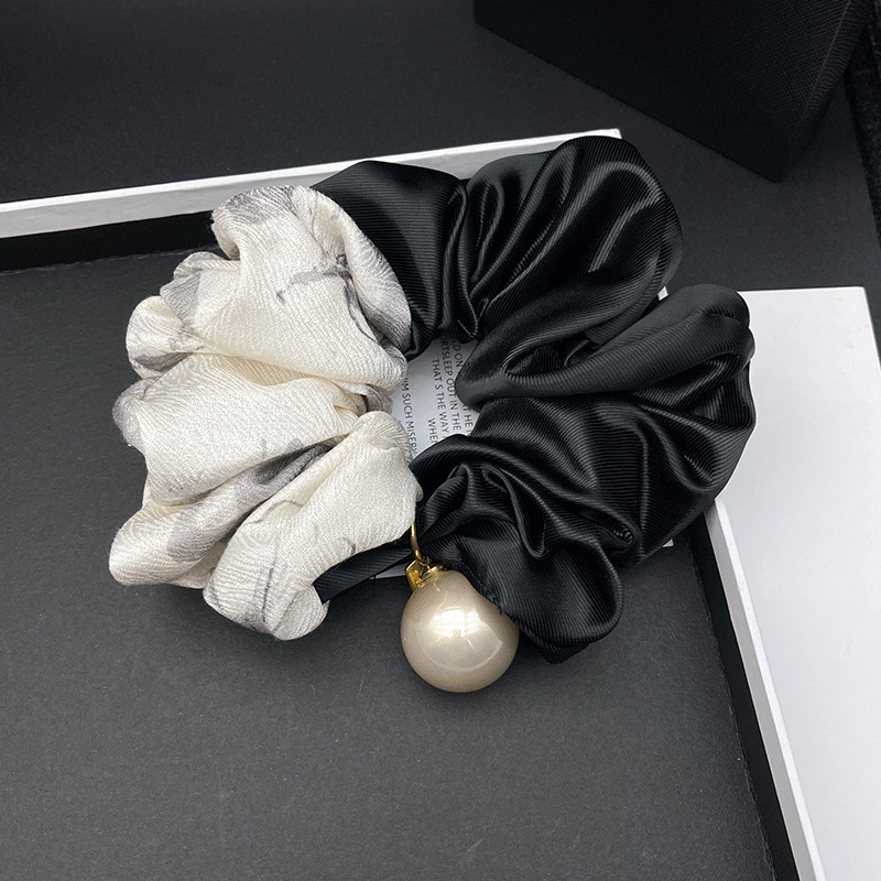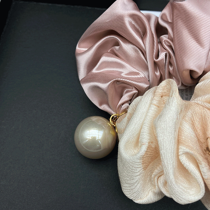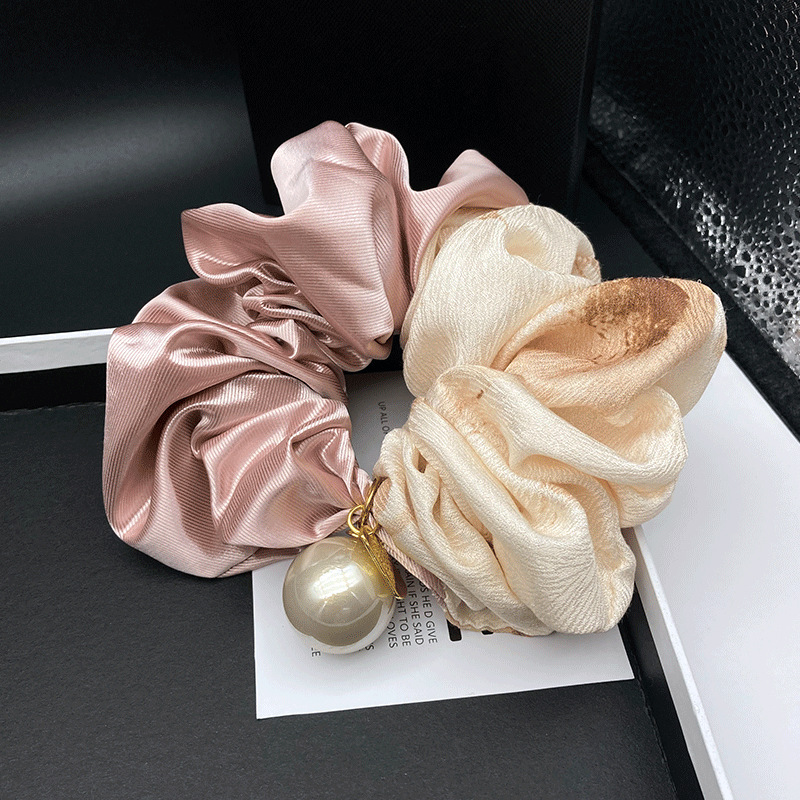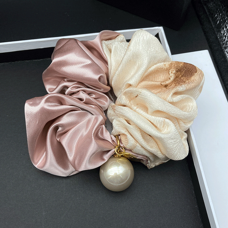 年新款拼接珍珠缎面大肠发圈女高级感皮筋头绳丸子头气质发饰