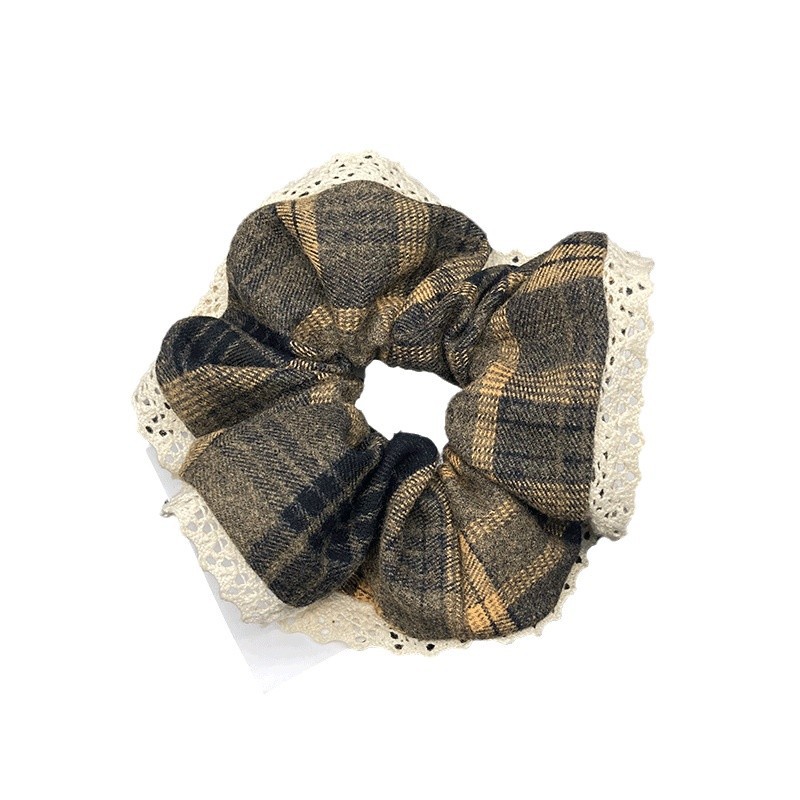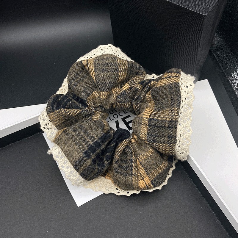 复古蕾丝花边大肠发圈新款毛呢格纹发圈扎低马尾头绳发饰