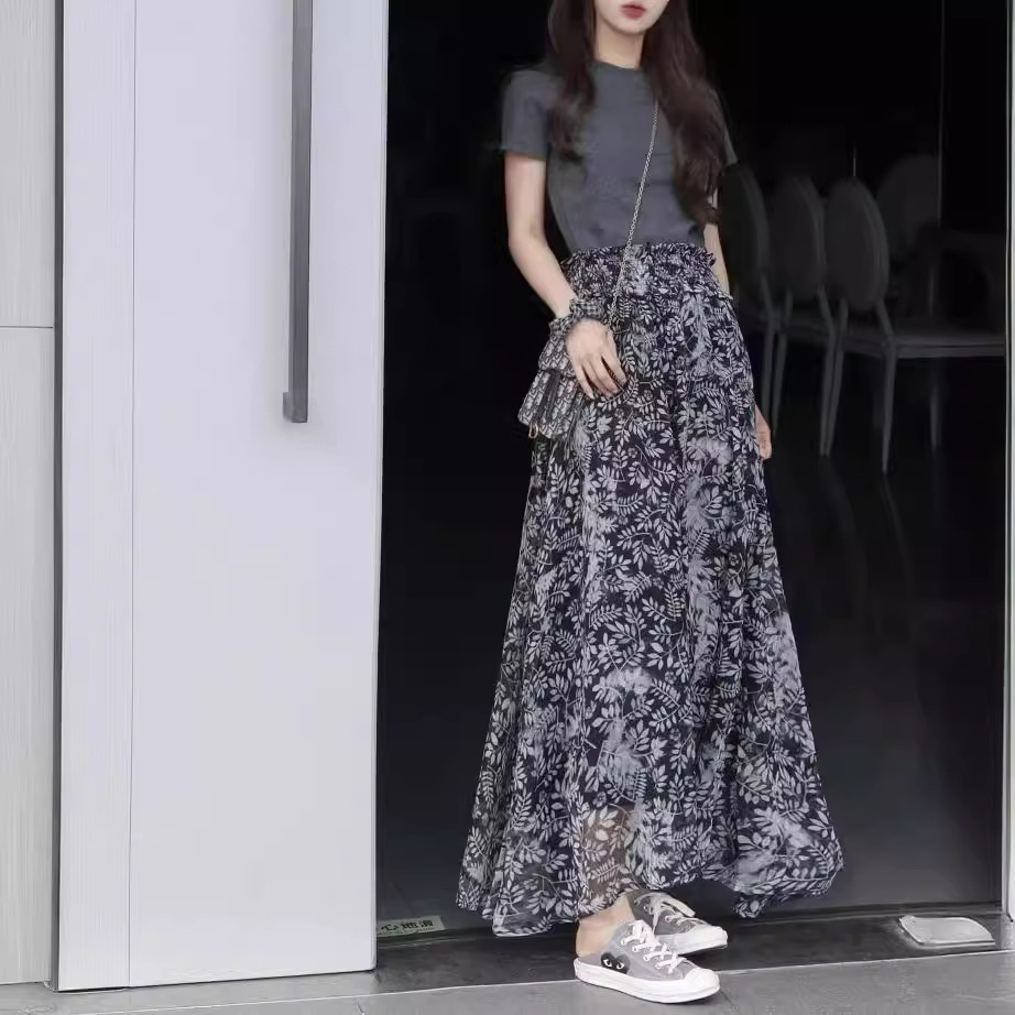 茶歇碎花半身裙女夏季中长款绝美法式设计感高腰收腰显瘦气质裙子