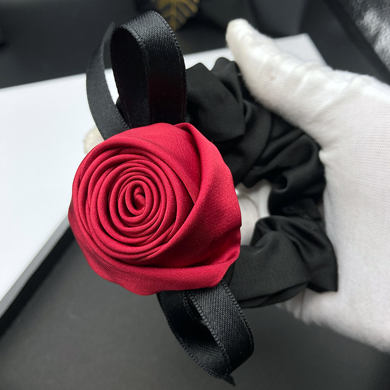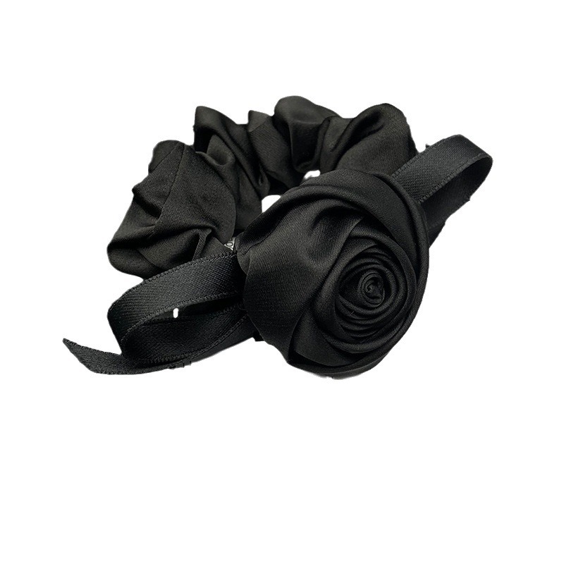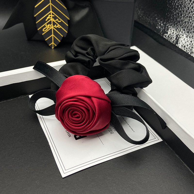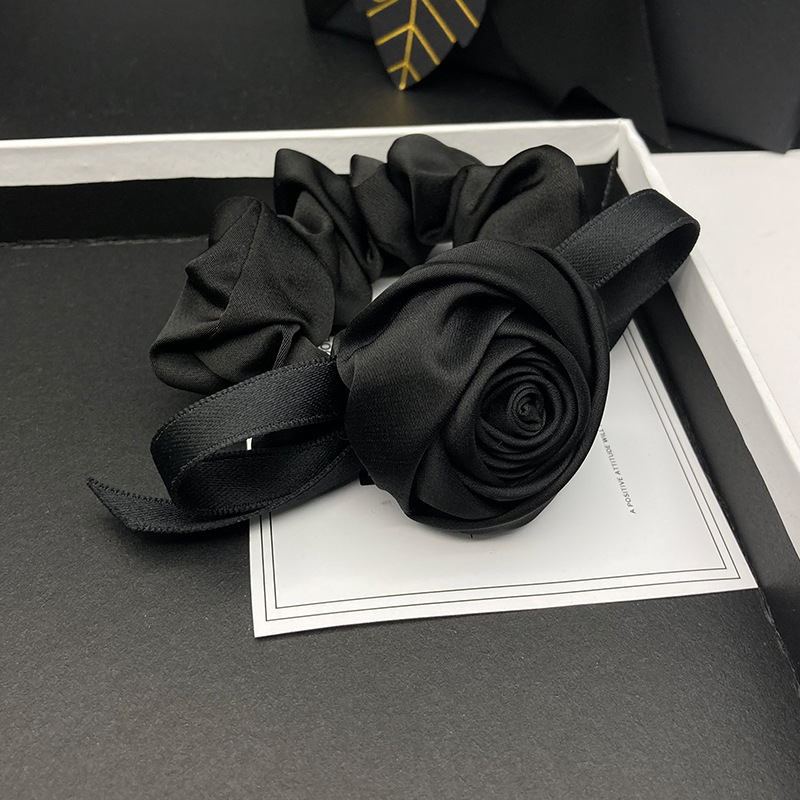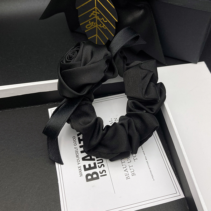 原创复古法式立体玫瑰花朵发饰女大肠缎面头绳高级气质后脑勺发圈