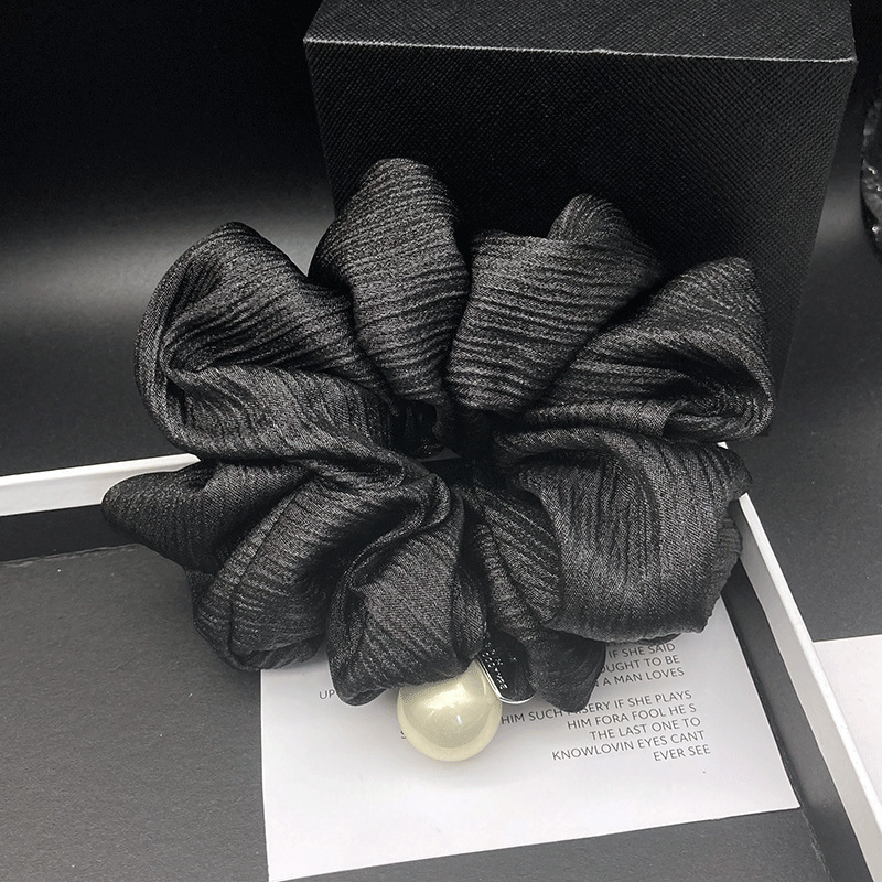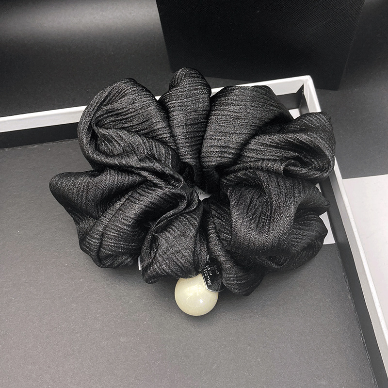 高级感气质黑色珠光纱大肠发圈女韩式时尚扎马尾头绳简约绑头发绳