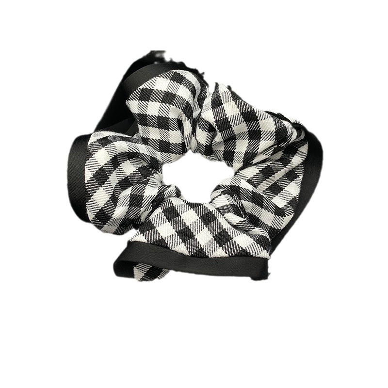 高级黑白格子大肠发圈女高级感丸子头皮筋扎头发绳低马尾头绳发饰