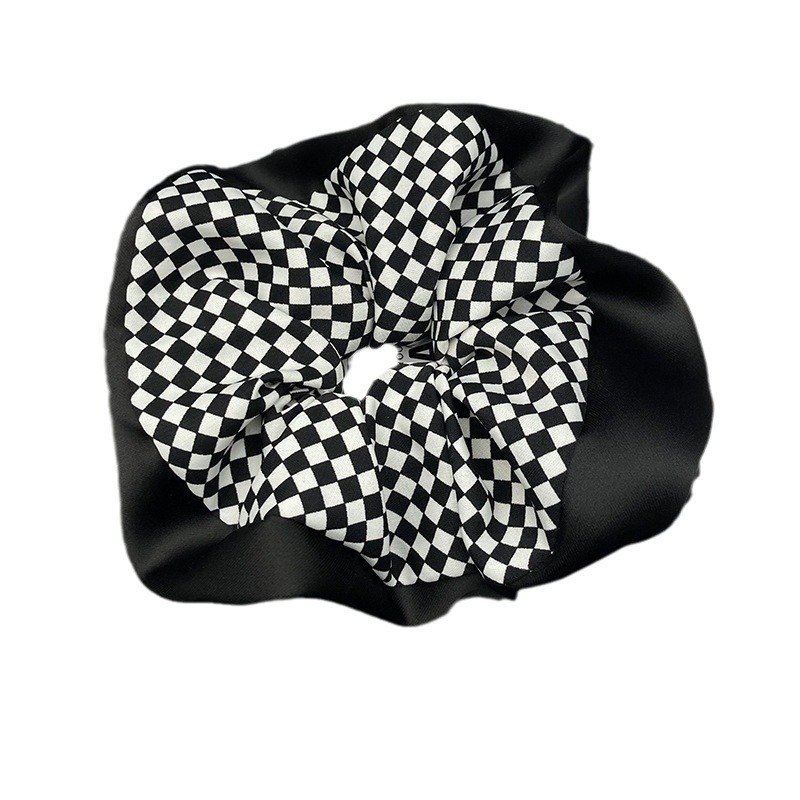 韩国缎面棋盘格大肠圈头花头绳法式复古优雅丸子头发圈粗发绳女
