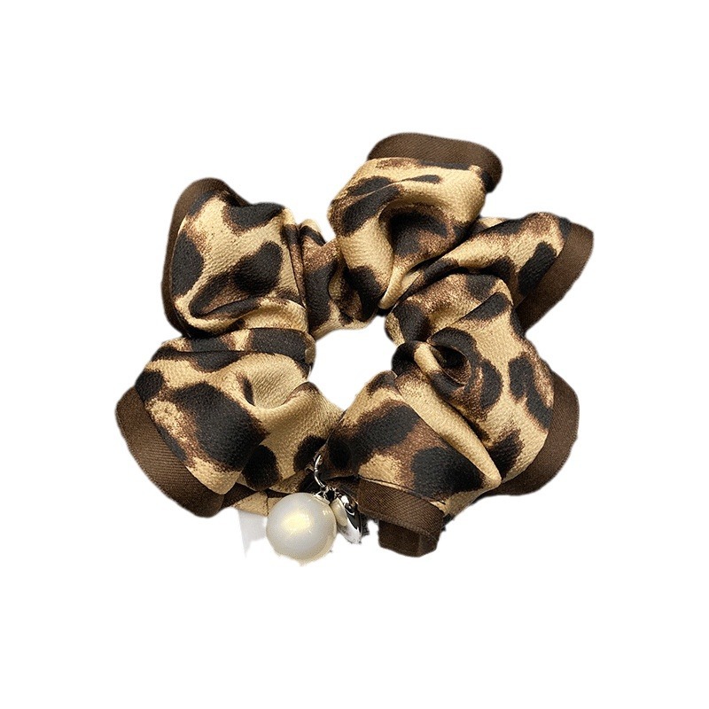复古气质豹纹色发绳女新款大号珍珠扎头发大肠发圈头绳发饰