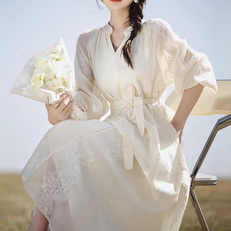 连衣裙爆款 精致棉柔绣花 慵懶法式气质夏季女 女神范连衣裙