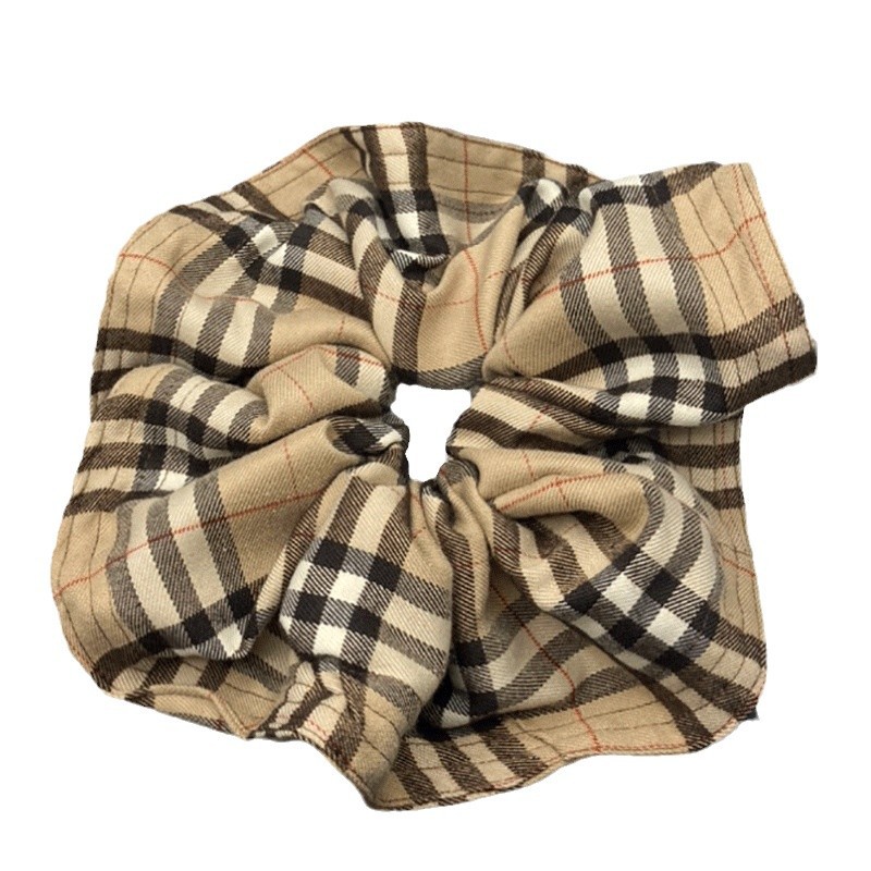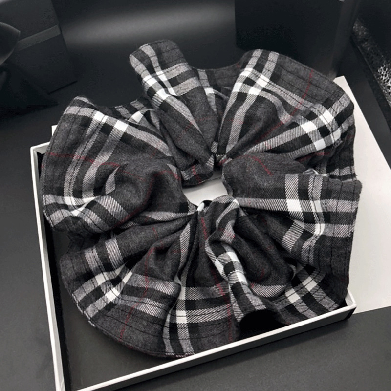 经典百搭复古格子重工特大号肥肠圈发饰新款扎低马尾发绳头花
