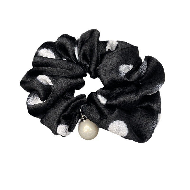 黑色波点大肠发圈森系丸子头气质肥肠头花复古慵懒风大号缎面头饰