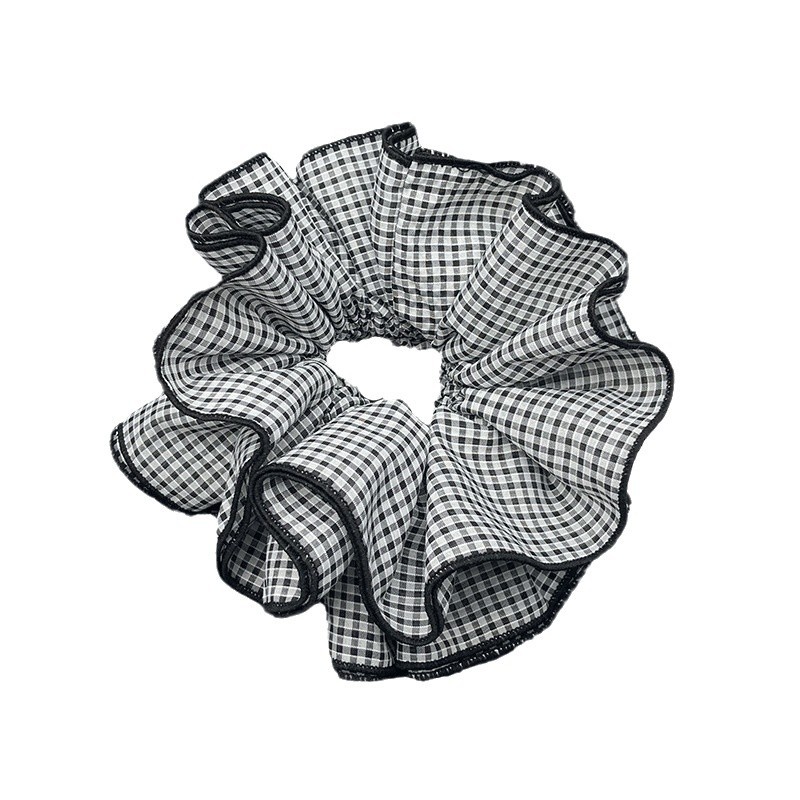 复古时尚肥肠圈双层黑白格纹ins甜美褶皱花苞发圈头花发饰女