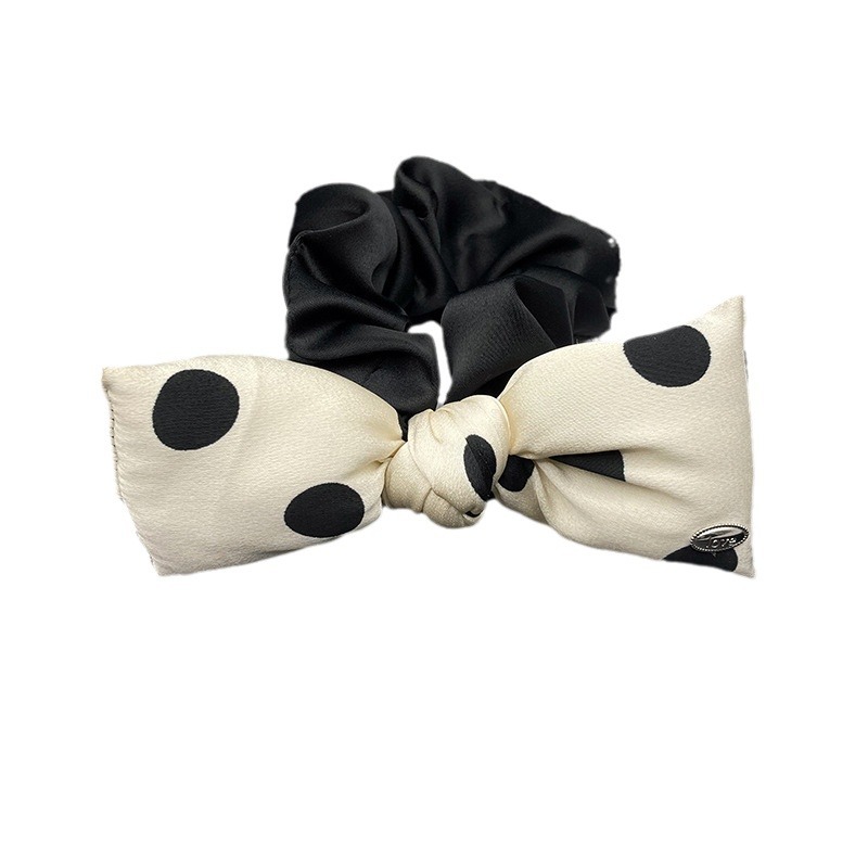 法式波点蝴蝶结缎面头绳少女扎头发绳大肠发圈丸子头皮筋发饰头饰